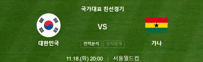 바로 내일 11월 18일 화요일 저녁에 서울월드컵경기장에서 우리 대한민국 대표팀이 아프리카의 강호 가나와 최종 평가전 친선경기를 앞두고 있습니다.