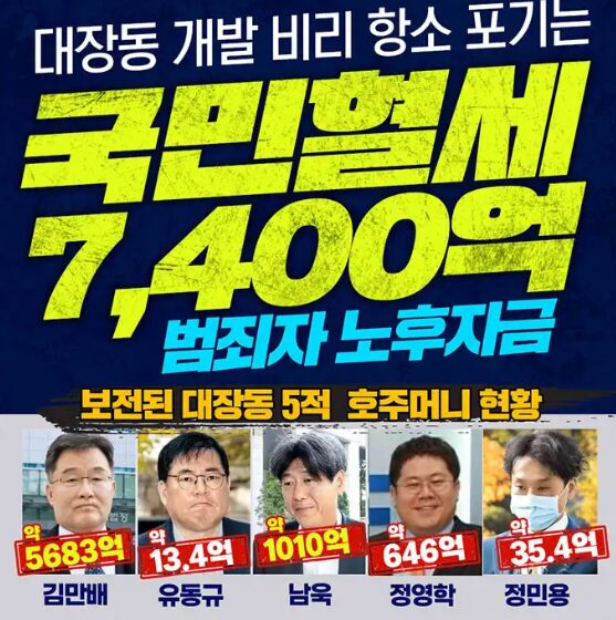 대장동 개발 비리 사건 항소 포기로, 관련 범죄자들을 돈방석에 앉게 되었다.