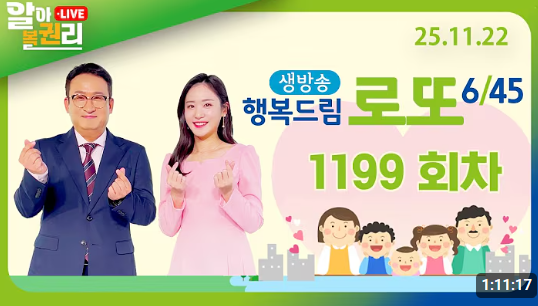 1199회 로또번호는 공유합니다. 그리고 생방송 로또 추첨 방송도 함께 하단에 링크 넣었습니다.