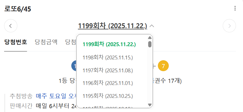 2025년 11월 22일 토요일 로또 당첨번호 행운의 주인공은 당신?