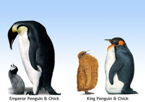 어미 임금펭귄과 황제펭귄은 키와 덩치만 다를뿐 실제로 너무 비슷하게 생겼습니다.