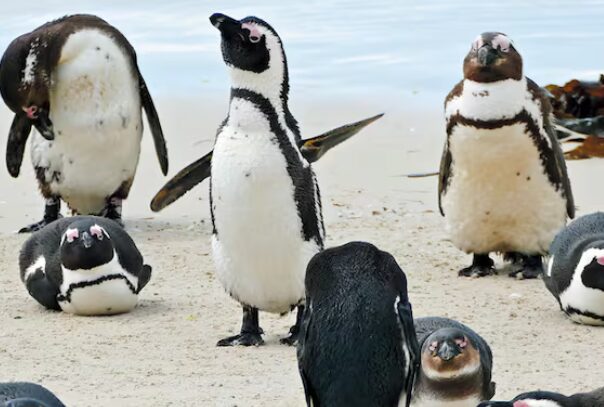 아프리카 펭귄으로도 불리며 유일하게 아프리카 남부 해안에 서식합니다.