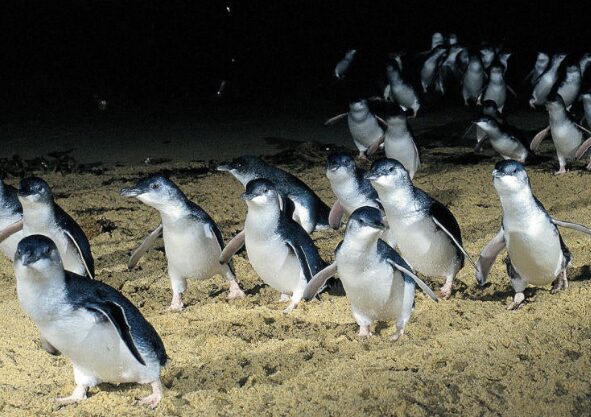 호주와 뉴질랜드 해안에 주로 서식하며 야행성 습성이 있어 밤에 해안가 둥지로 돌아오는 모습이 관찰됩니다.
