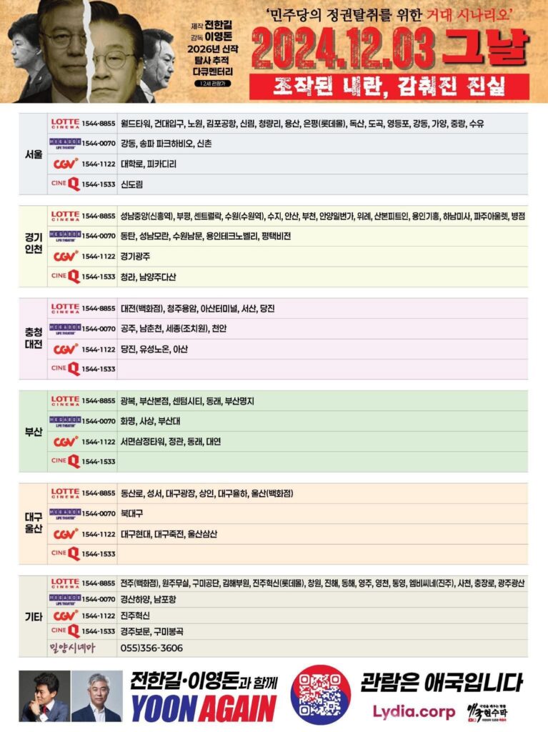 그럼에도 상영관은 점점 확대되고 있으니, 더 늦기 전에 극장을 방문하여 2024.12.3 그날의 진실과 마주하시길 바랍니다.