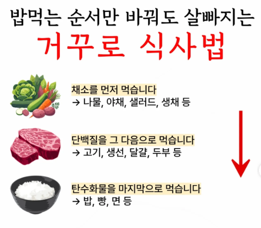 일명 거꾸로식사법이라 부르는 혈당스파이크 예방 식사 순서입니다.