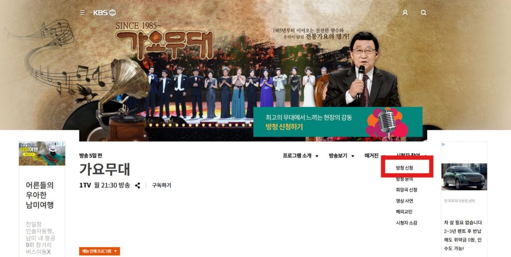 KBS 가요무대 방청 신청 방법 사이트