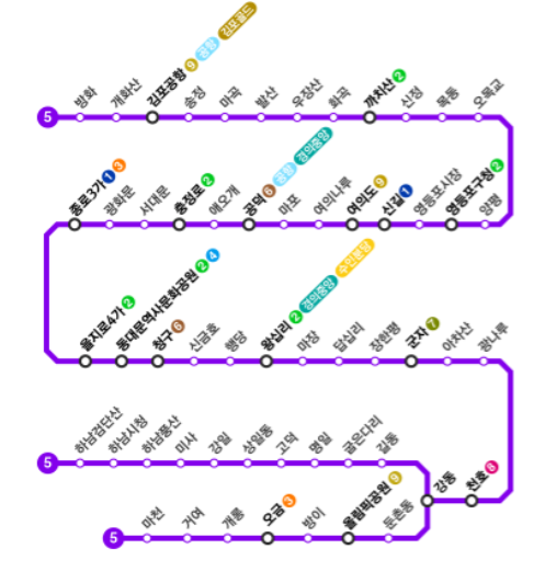 수도권 지하철 5호선 전체 노선도 정거장을 정리해 보겠습니다.