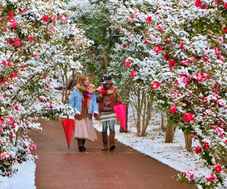 동백: 제주와 남해안에서는 12월부터 피기 시작해 2월 말~3월 초에 절정을 맞습니다.