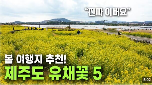유채꽃: 제주도는 2월부터 이미 피어 있으며, 내륙은 3월 중순부터 노랗게 변합니다.