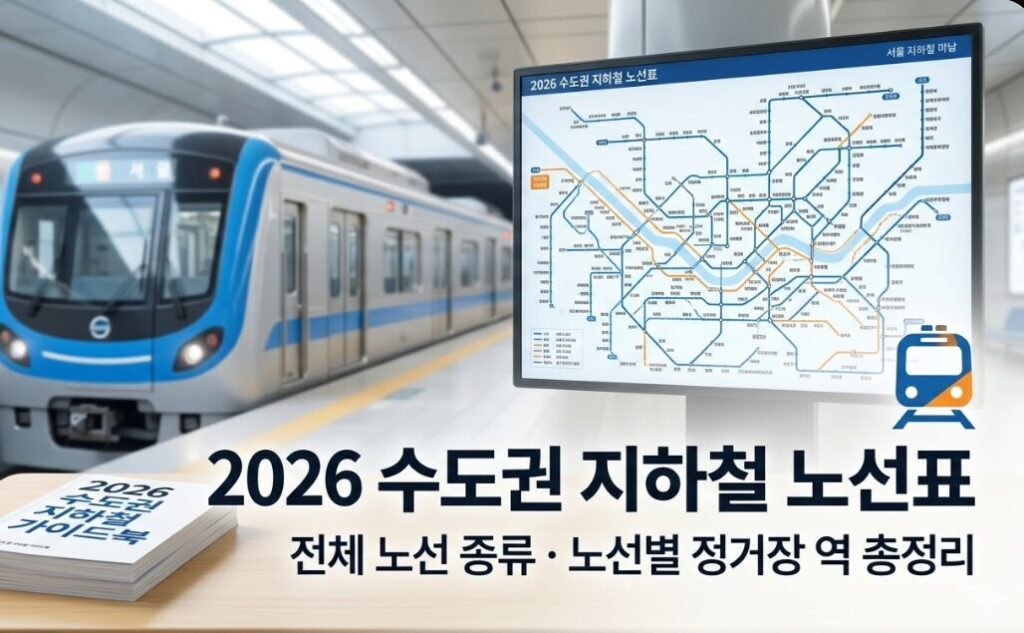 2026년 최신 지하철 노선표 전체노선도 사진과 노선 종류 및 구간별 정거장을 정리해 보았습니다.
