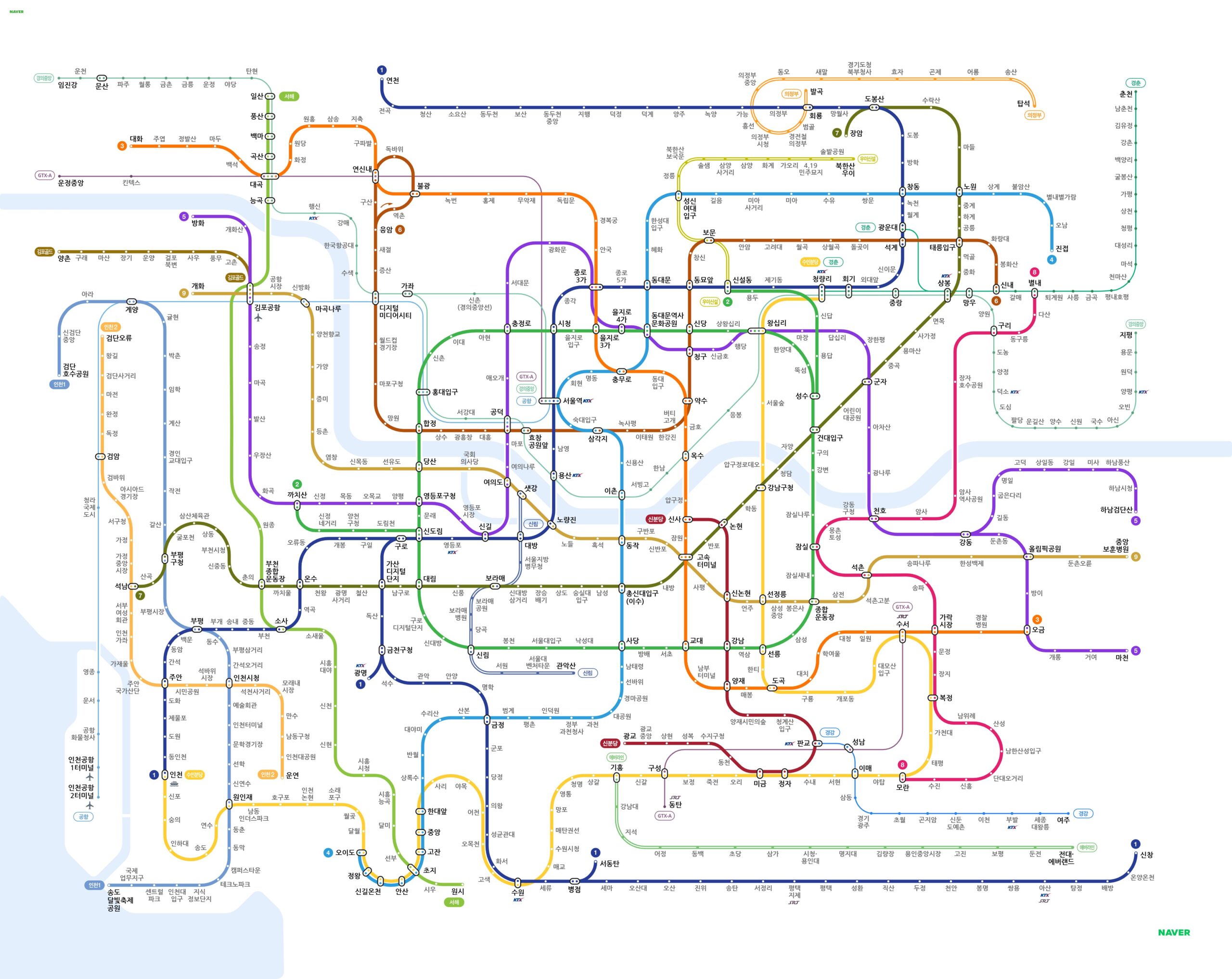 지하철 전체 노선표 노선별 전체 정거장과 지하철노선도 크게보그 확대사진도 함께 공유합니다.