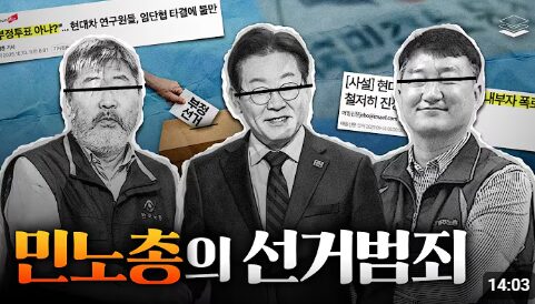 일례로 현대차 노조의 내부 투표와 개표 과정에서 부정선거 의심된다는 내부 여론이 많다고 한다.