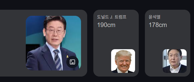 ‘이재명 키’를 구글에서 찾아보았더니, 그 바로 옆에 연관 정보로 ‘트럼프 키’와 ‘윤석열 키’도 함께 나와 있다.